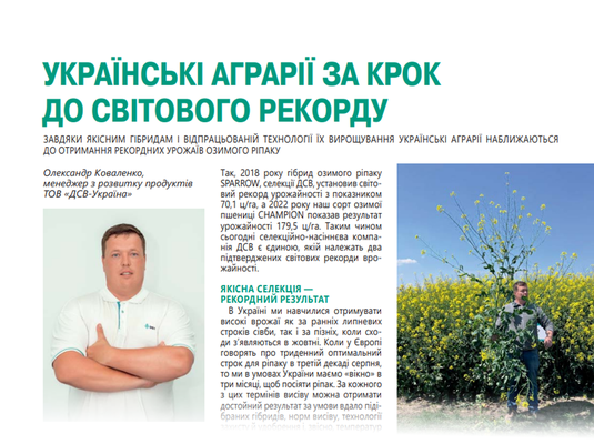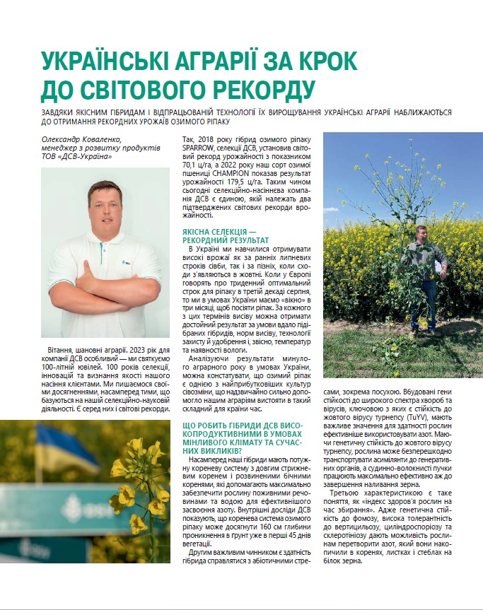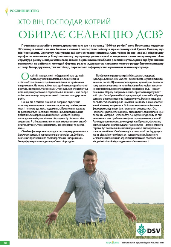 Олександр Коваленко, менеджер з розвитку продуктів ТОВ «ДСВ-Україна». Журнал Фармер, червень 2023р.