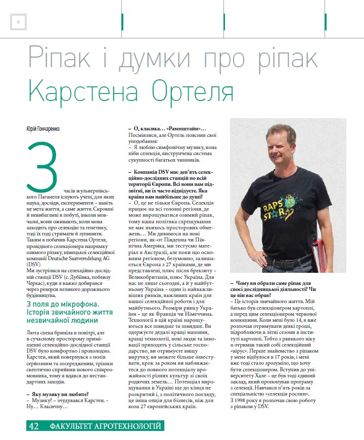 Інтерв'ю з селекціонером напрямку озимий ріпак. Журнал Зерно, липень 2021р.
