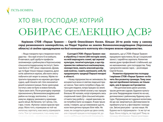 Інтерв'ю з Сергієм Олексієвичем Косюком. Журнал Агро Еліта, травень 2021